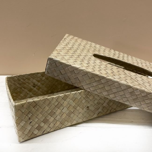 Deze tissueboxen zijn van pandanblad, handgemaakt in Bali. Maak van je papieren tissuebox een stijlvol item voor in je badkamer of woonkamer!